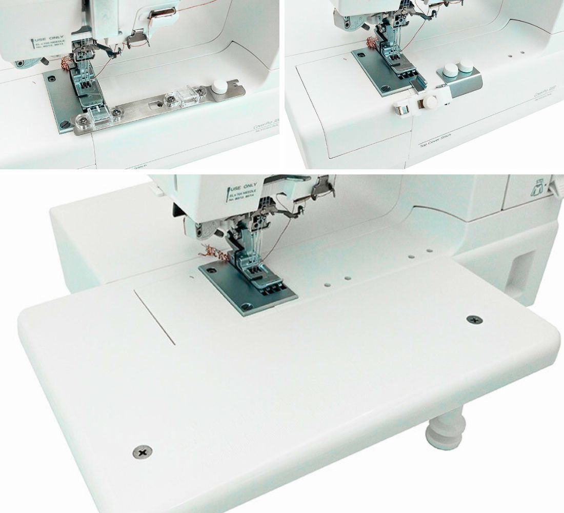Prezentowany Cover Janome 2000 CPX oferujemy wraz ze stolikiem powiększającym pole pracy. Stabilny stolik o wielkości 29,5 x 20,5 cm wykonany jest z wytrzymałego plastiku łatwego do utrzymania w czystości. Nóżki stolika zakończone są gumowymi podkładkami, które zabezpieczają go przed przemieszczaniem się w trakcie pracy. Regulowana wysokość nóżek pozwala na wygodne dopasowanie stolika do indywidualnych potrzeb.