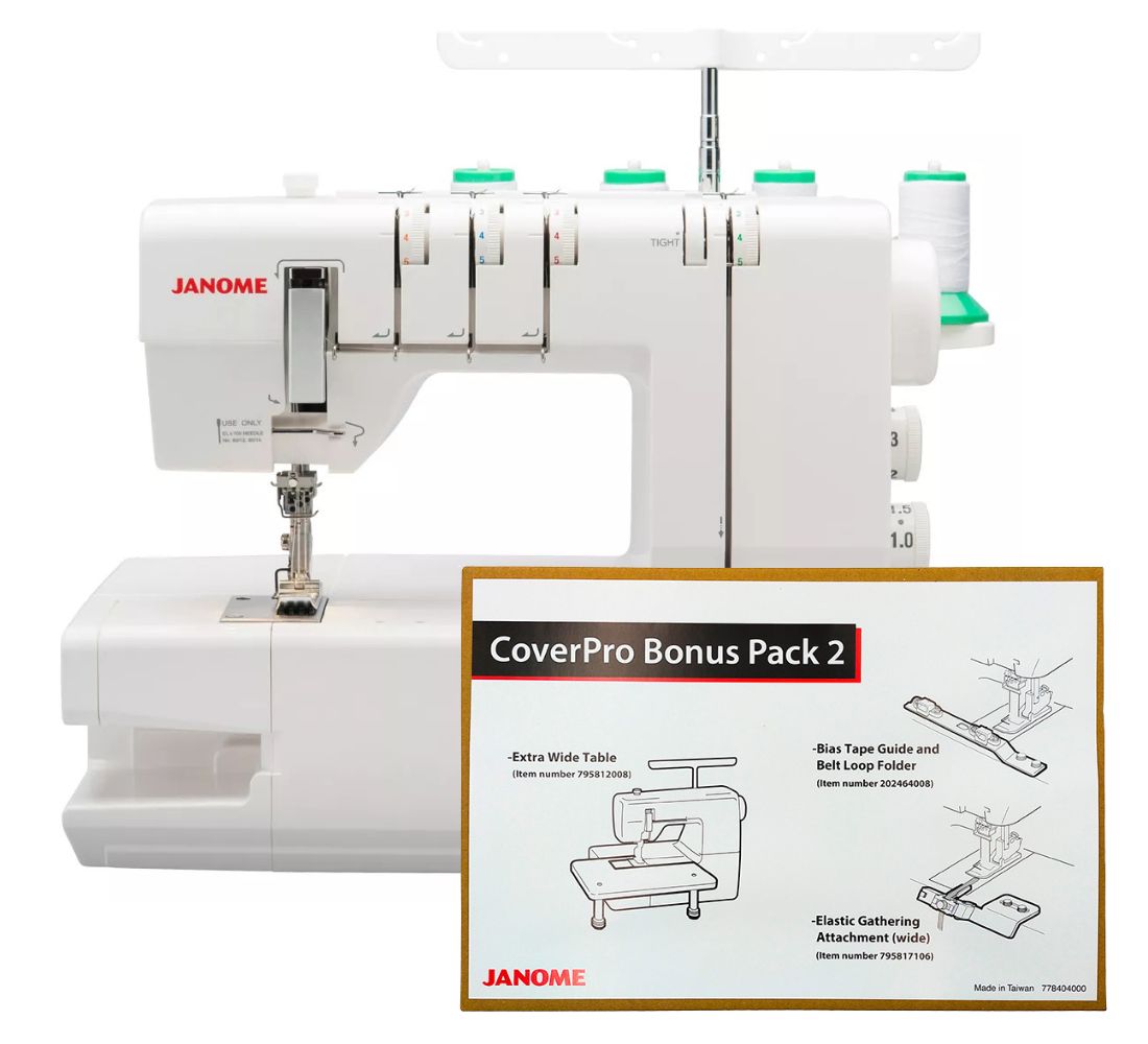 Cover Janome 2000 CPX to urządzenie pozwalające na profesjonalne wykończenie szytych ubrań. Dzięki niemu można w szybki i łatwy sposób wykończyć tkaniny elastyczne, z których uszyta jest bielizna, dzianina, T-shirty czy odzież sportowa. Przy jego pomocy bez trudu podwiniemy rękawy, mankiety oraz dolne części bluzek, spódnic czy sukienek. Cover pozwala na użycie ściegu łańcuszkowego lub drabinkowego, który sprawdza się doskonale podczas obszywania miejsc narażonych na częste i silne rozciąganie.