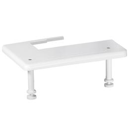 Stolik powiększający pole nie jest standardowym wyposażeniem każdego coverlocka. Jest dedykowany dla konkretnego modelu maszyny i może być dodawany fabrycznie, a może też znajdować się na liście akcesoriów opcjonalnych, które można dokupić oddzielnie. Stolik przydaje się szczególnie podczas pracy z większymi fragmentami materiałów, które ze względu na swój rozmiar i ciężar ściągają materiał, utrudniając jego równe prowadzenie.