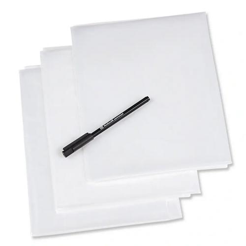 Te w pełni przezroczyste folie-kalki do łatwego przenoszenia wzorów wzorów na tkaniny. Wykorzystywana w krawiectwie, quiltingu. Umożliwia przenoszenie wzorów przy użyciu dołączonego w komplecie permanentnego pisaka.