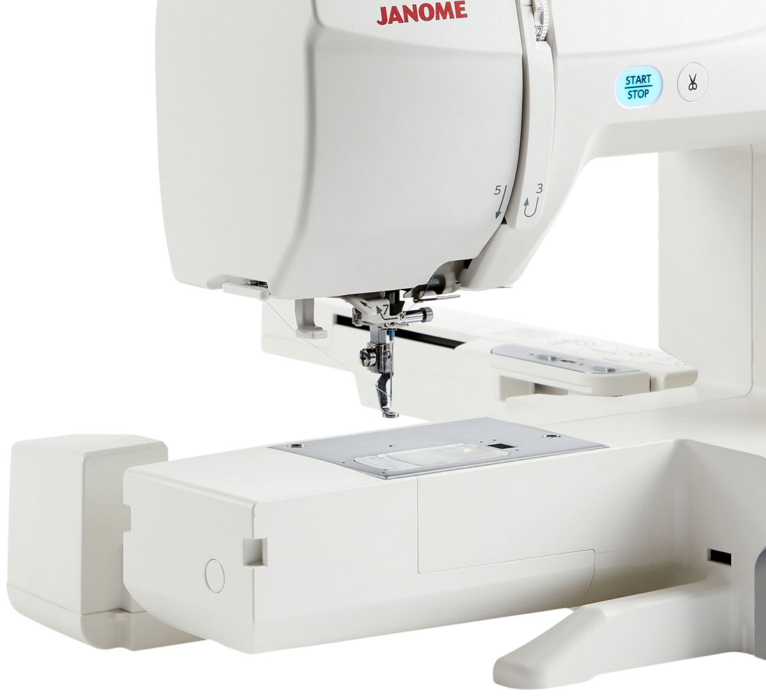 Hafciarka JANOME MC100E to nie tylko sprzęt, który pozwala zamieniać kreatywne wizje w coś namacalnego - poduszki z cytatem, personalizowane ręczniki czy subtelne detale na ubraniach dziecięcych. Dzięki wolnemu ramieniu znacznie łatwiej dotrzeć w trudno dostępne miejsca. Do hafciarki można dokupić dodatkowe mniejsze tamborki, które dają jeszcze większą swobodę podczas haftu z użyciem wolnego ramienia. MC100E sprawia, że haft staje się formą relaksu - rytmiczną, precyzyjną i twórczą.
