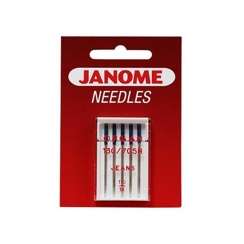 Igły do maszyn do szycia przeznaczone do szycia jeansu oraz tkanin syntetycznych, powlekanych, ceraty, skaju, drelichu oraz grubych materiałów. Igły Janome 130/705H mają specjalnie wyprofilowany czubek, który zapewnia gładki i równy szew. Igły do jeansu z łatwością przebijają się przez strukturę grubych materiałów. Półpłaskie igły Janome zaprojektowane zostały pod najpopularniejszy system igieł 130/705 który pasuje do większości domowych maszyn do szycia.