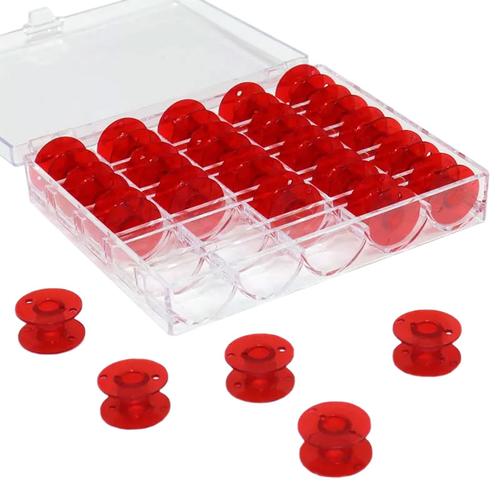 Teraz łatwo możesz mieć zawsze pod ręką 25 czerwonych szpulek do maszyn do szycia. Te szpulki są wykonane z trwałego tworzywa sztucznego o żywym, intensywnym kolorze, co ułatwia ich zlokalizowanie. Praktyczne pudełko pozwala na przechowywanie wszystkich 25 szpulek, dzięki czemu nigdy nie zabraknie Ci ich w trakcie szycia. Ponadto, dzięki temu, że nieużywane szpulki są zawsze w pudełku, nie stanowią one przeszkody podczas szycia, a te, które pozostają w pudełku, nie rozwijają się niepotrzebnie.