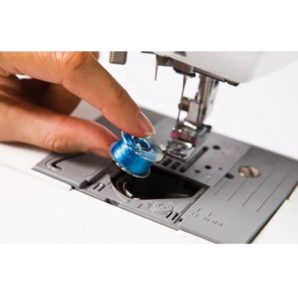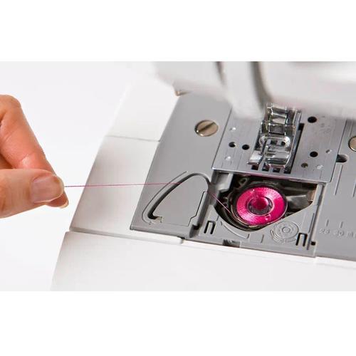 Automatyczny nawlekacz zrobi to jeszcze szybciej. Wystarczy wprowadzić w niego nitkę, a następnie jednym ruchem opuszczamy i nawlekamy igłę.