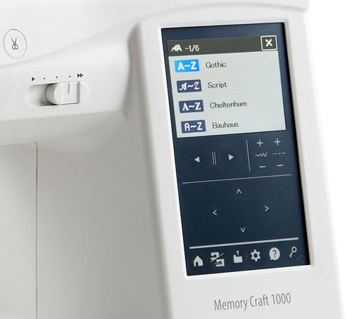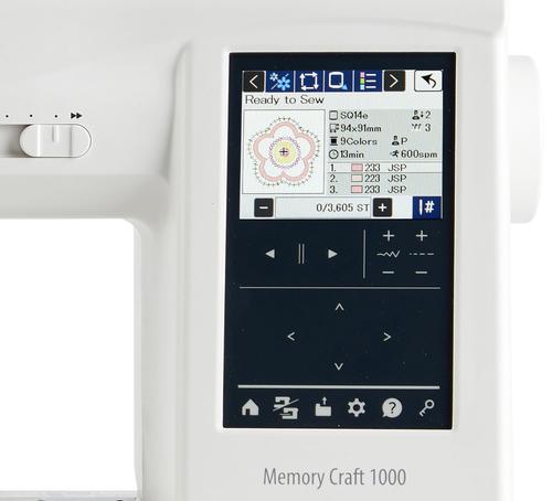 - Duży, kolorowy wyświetlacz LCD informujący o wybranym ściegu, jego parametrach i sugerujący dobór odpowiedniej stopki, a także pozwalający wygodnie programować kolejność szycia, modyfikować ściegi lustrzanym odbiciem czy dobierać właściwie programy dla szycia podwójną igłą