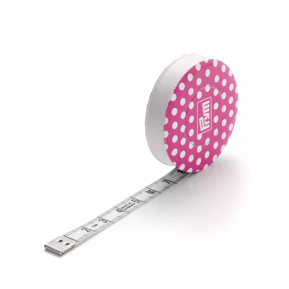 Dla każdego, kto ceni dobrą jakość i trwałość - polecamy niemieckie miarki PRYM. Miarka ma standardową długość 150 cm, z kolei szerokość taśmy to 1 cm. Po obu stronach są oznaczenia w centymetrach. Taśma z biegiem czasu nie wyciąga się ani nie wyciera, dlatego miarka zostanie z Tobą na długo. Miarka lekko rozwija się i utrzymuje żądaną długość, a zwinięcie następuje po naciśnięciu przycisku na środku.