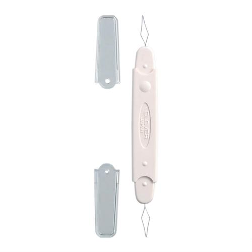 Nawlekacz Clover jest dwustronny, a każda końcówka zamykana jest plastikową osłonką co zapewnia bezpieczne przechowywanie w pudełku z innymi akcesoriami.