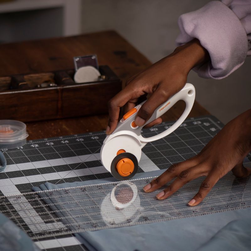 Nóż krążkowy krawiecki Fiskars, wzmocnione ostrze (ø 45 + ø 60 mm)