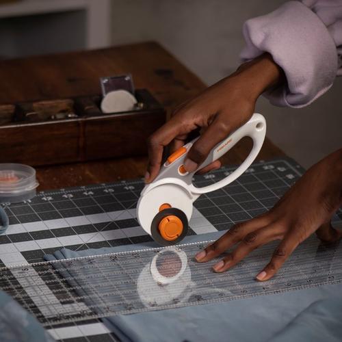 To pierwszy nóż krążkowy Fiskars, który umożliwia wykorzystanie ostrzy 45 mm i 60 mm. To praktyczne rozwiązanie 2 w 1 sprawia, że nóż jest bardziej uniwersalny i wszechstronny. To wszechstronne narzędzie tnie wiele warstw tkanin, papieru, filcu, winylu, grubych materiałów, batystu i pianki, a dwa ostrza dołączone do zestawu wykonane są z wysokiej jakości, ultra wytrzymałej stali pokrytej tytanem. Przesuwny przycisk wysuwa i blokuje 45-mm ostrze dla bezpiecznego użytkowania. Ostrze 60-mm można w pełni wysunąć, naciskając jednocześnie przyciski przesuwu i pchania. Wciśnięty przycisk chowa ostrze do bezpiecznego przechowywania. Zakrzywiona rączka z uchwytem SoftGrip™ wygodnie leży w dłoni i pozwala trzymać nóż podczas pozycjonowania materiałów. Ten nóż obrotowy można zamontować z ostrzem po obu stronach, a dołączony pokrowiec może służyć do przechowywania dodatkowego ostrza i piasty, gdy nie są używane.p>