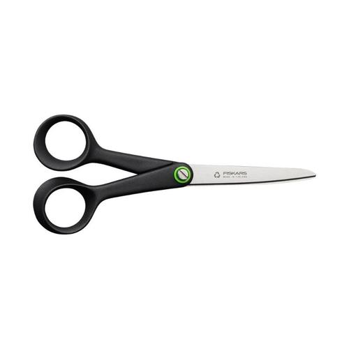 Nożyczki Fiskars 1062545 ReNew mają całkowitą długość 17 cm, to nożyczki o wszechstronnym zastosowaniu, świetnie sprawdzą się zarówno w domu, biurze jak i w Twojej pracowni krawieckiej. To przyjazna dla środowiska alternatywa dla standardowych nożyczek. Fiskars ReNew są wykonane z materiałów pochodzących z recyklingu (80%) oraz odnawialnych (13%) i w 100% nadają się do recyklingu. Wytrzymałe ostrza ze stali nierdzewnej z recyklingu mają precyzyjnie szlifowane ostrza, które długo pozostają ostre. W razie potrzeby w przyszłości możesz odnowić je specjalną ostrzałką Fiskars. Ergonomiczna rękojeść została wykonana z tworzywa sztucznego również pochodzącego z materiałów ponownie przetworzonych oraz odnawialnej celulozy. Nożyczki zapewnią Ci doskonały komfort, jak i pełną kontrolę podczas cięcia. Nożyczki produkowane są w Finlandii przy użyciu zrównoważonych metod produkcji. Samo opakowanie także wykonane jest z materiałów pochodzących z recyklingu.