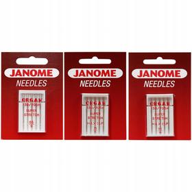Decydując się na wybór owerloka Janome nie musisz obawiać się, że będzie Ci trudno dokupić do niego podstawowe elementy takie jak igły, nici czy zużywające się z biegiem czasu noże. Owerlok używa standardowych półpłaskich igieł dla owerloków. Takie igły mają symbol HAx 1 SP, są lepiej przystosowane do pracy przy wysokiej prędkości, jaką rozwija owerlok, a także pracują nieco bliżej chwytaczy dla zminimalizowania ryzyka przepuszczania ściegu. Tego rodzaju igła ma kulkowe zakończenie sprzyjające pracy z delikatnymi dzianinami i elastycznymi materiałami. W naszym sklepie możesz znaleźć polecany zestaw igieł do owerloków jednej z wiodących marek- japońskiej firmy Organ, która od lat przygotowuje igły, na których w fabrykach ustawiane i testowane są maszyny Janome. Również takie igły są dołączane oryginalnie do nowych maszyn.